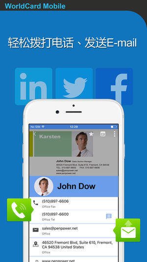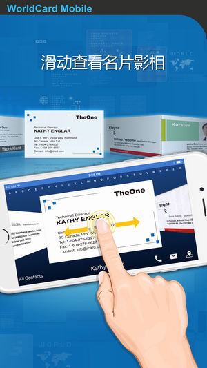 全新改版!名片管理功能再进化,打造你的黄金人脉! ◆市场肯定◆ - 各语系版本登上全球194国的Business类别TOP 10排行榜。 - 获得全球知名手机品牌、电信业者、专业CRM厂商青睐,全球用户突破2000万以上。 - 荣获「美国无线通信展大奖-商业应用类别」( CTIA E-Tech Awards Winner)的肯定 - 荣获台湾区数字内容产品奖。 - 荣获MacWorld之iPhone最佳名片管理应用软件。 ◆产品信息◆ 全新改版WorldCard Mobile App只需使用手机拍摄名片,即可自动辨识名片上的姓名、公司、部门、职称、地址、电话、电子邮件…等信息,并自动填入…
