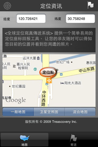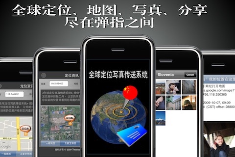** 支持的OS版本: OS3.1或以上的版本 ** 使用介面: 全中文介面 ** 地图: 中文地图 ** 适用设备:iPod Touch 2G, iPhone, IPhone 3G 及 IPhone 3Gs ** 网路需求: 需要 WIFI, GPRS 或3G以上 ** GPS需求: 有内建GPS较佳,但可支援手动定位 ============================ 非买不可的理由: 透过AGPS卫星定位使用者的所在地点并能结合拍照及邮件功能,将GPS资料及现场照片传送给你想传送的人。想要知道亲友或另一半现在人在哪里吗?请他(她)装上这个软体,你就可以随时知道他(她)在哪,附近有哪些有趣的画面或景象。 功能适用时机: * 当作免费的MMS,可将有定位的讯息、照片随时传送给亲友,让他们更有参与感。 * 随时得知您目前的经纬度座标,并可以三种不同地图模式察看周围地理位置。 * 旅游出差或身在异乡,想将自己的最新所在位置及实况照片随时发送给心爱的人,让家人放心。 * 聚会时,欲邀请好友即时参加时,可马上发mail给对方位置及现场照片,让他感受聚会的热力四射喔! * 夫妻或情侣一起装上此套软体,随时可掌握对方的最新位置、最美倩影、最帅模样。 * 出国旅游时,可将精彩影像与亲朋好友即时分享。 * 遇紧急状况,如登山迷路时,可将所在位置及附近地形、特殊处拍摄寄出,寻求救援 ============================ 备注: - 使用时,请参照GPS精准度,数值越小,表示定位精确度越高。 - 传送写真邮件及定位资讯需要存取网际网路。如果使用时没有网路,程式会先暂存信件,等到有网路时才寄出。 - 如果您使用Yahoo的Email 帐号,请不要在讯息里面加上表情符号(Emoticons, 绘文字),因为Yahoo电邮系统发现表情符号,就会将您的电邮内容清除 - 如果您寄信時發現信件內容有亂碼,建議您不要使用表情符號,因為親友的電子郵件不一定能支援。另外,如果此問題還是沒解決,建議您刪除再重新安裝,即可解決此問題。