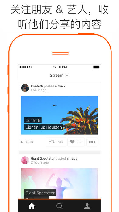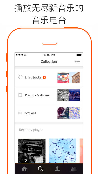 SoundCloud 让你能听到更多的音乐&音频。寻找最新、最流行音乐;收集歌曲和播放列表;关注好友和艺术家;发掘播客、喜剧和新闻。 无论你在哪里,无论你正在做什么,SoundCloud 都会让你听到更多精彩内容。更多嘻哈;更多摇滚;更多电子乐;更多经典乐曲;更多家庭音乐、爵士乐、有声读物、体育消息…… 主要特点- 发掘潮流音乐和音频- 搜索歌曲、艺术家和其他用户- 关注好友和艺术家们,倾听他们分享的精彩内容- 根据不同类型寻找歌曲- 在你使用Wifi或者流量时,听你的串流音乐- 锁屏状态下也可以进行播放、暂停和跳过歌曲等操作- 用 Facebook 或 Google+ 账户登录或注册 - 匿名听歌:下载应用后可以不创建账号就播放流行歌曲或音频 使用方法使用应用发掘音乐和音频的方法很简单。在“浏览”区寻找所有类型的潮流音乐和音频。浏览时,点击心型符号来“赞”你喜欢的歌曲,并将其存入“我的最爱”以便之后播放。你可以在“搜索”页找到你最爱的歌曲和艺术家。关注他们,就可以听到他们在你的“串流音乐”里发表的新音乐。 对 SoundCloud 的赞美“SoundCloud 专注于创建大量的内容,并将其放到网络以便分享。“音频的 YouTube”这个比喻似乎是越来越贴切了,尤其是当它的用户数量继续激增的时候。” – ReadWrite“SoundCloud 是一个分享平台。还记得以前的音频在线吗? - 就是那个你必须要下载 Real Player 或者Windows Media Player才能听歌曲的那个时候。那个想听音乐必须要先下载的时代已经过去了。” – USA Today“它是音频自助创建和发掘平台的改革,是音频的Twitter、YouTube 和 Kindle Direct Publishing。 它不但是寻找或者分享你的好友们或许正在听的歌曲、播客或者有声读物 - 还是寻找和分享进行这些录制的人。” – The Verge 社区喜欢你听到的内容?那么就告诉我们把,并和全世界分享你的发现。SoundCloud 博客:http://blog.soundcloud.comFacebook:http://www.facebook.com/soundcloudTwitter:https://www.twitter.com/soundcloud Tumblr:http://soundcloud.tumblr.com Instagram:http://instagram.com/soundcloud 帮助您反馈给我们的越多,SoundCloud 会变得越好http://help.soundcloud.com/ https://twitter.com/SCsupport 权限您的隐私对我们来说是极其重要的。我们仅会要求一些权限,目的是为了让您能最大程度的使用此应用。如果您还有其他问题,请联系我们 – 参见“帮助”页面。 隐私政策:https://soundcloud.com/pages/privacy 使用条款:http://soundcloud.com/terms-of-use