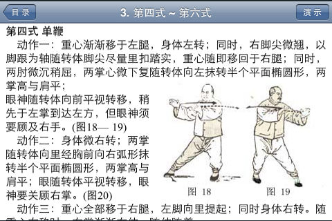 中华武术,源远流长,而太极拳则是中华武术中的一朵奇葩。 习武不仅能够强身健体,而且能够锻炼人的意志。 杨式太极拳是太极拳的一个流派。这派太极拳是由河北永年人杨露禅(1799-1872)及其子杨健侯 (1839-1917)、其孙杨澄甫(1883-1936)等人在陈式老架太极拳的基础上发展创编的。 杨式太极拳拳架舒展简洁,结构严谨,身法中正,动作和顺,轻灵沉着兼而有之;练法上由松入柔, 刚柔相济,形成独特的风格。 本应用程序通过251副例图和详细的描述,以及清晰的教学视频动作演示,完整的讲解了正宗的杨式太极拳所有85式的每一招式。 本应用程序提供了中文简体、繁体和英文三种文字,会…