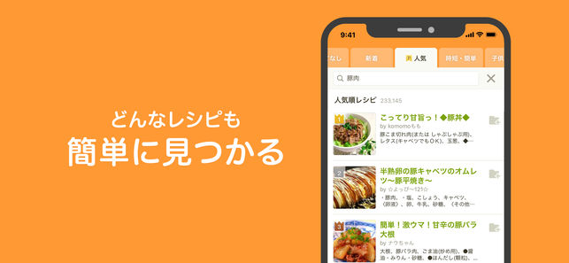月次利用者数は約5500万人・掲載レシピ数280万品以上! 日本最大の料理レシピ検索・投稿サービス「クックパッド」の公式アプリ。 レシピに特化して、最大限使いやすく・便利にしたアプリでは、時短、節約、簡単、弁当、ダイエットなど気になるテーマからお菓子、パンなどのカテゴリー、料理名や食材から検索できて、どんなレシピも簡単に見つかります。 「つくれぽ」で作ったみんなの感想も分かる! 気になったレシピはMYフォルダに保存、作った料理を記録してあなただけのレシピ帳に! さらにプレミアム会員なら、人気順検索や、殿堂入りレシピの機能でみんなに人気のレシピを快適に素早く探せます! ◆こんな方におすすめ…