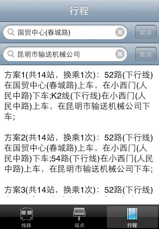 本应用包含昆明的公共汽车的详细信息。完全离线,为您节约上网费用: - 用户可以浏览各路公交的详细情况 - 用户可以根据站点查询车次 - 可以根据出行站点和目的站点计算出行路线(只支持两次换乘及以下) - 提供拼音首字母查询方式