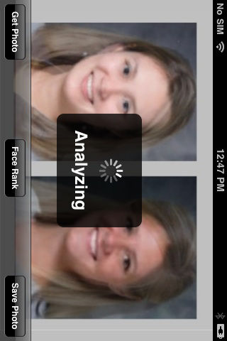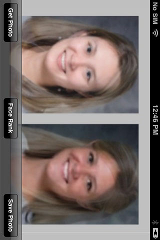 THIS APPLICATION RANKS HUMAN FACES FROM 0 TO 10 (MOST AESTHETICALLY PLEASING). It uses computer vision (OpenCV) to automatically recognize human faces & features in photographs taken from the camera or the photo library. The faces are measured and scored: 50% of the score is calculated based on the Golden Ratio criteria and the other 50% is by comparison with census. HOW TO USE 1) Press 'Use Photo' to select a photo from your the photo library or take a new photo using the camera. 2) Press 'Face Rank' to start processing the photo. 3) A ranking number appears next to each face. For better performance, please take note of the following conditions : - The photo should also show the head of the person and not only just the face. - The face should be at least 50x50 pixels. (The human faces in this application are computer-generated composites, any resemblance is purely coincidental.)
