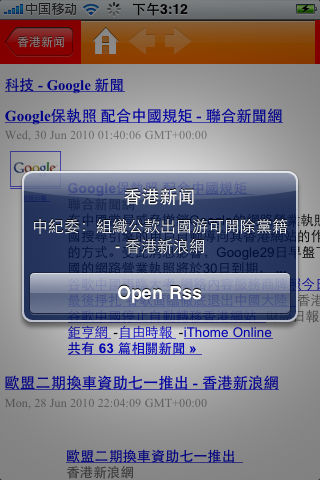 push the latest hongkong news to your iphone subscribe www.google.com.hk news rss by category www.google.com.hk news category is world,nation,business,entertainment,science,sports,social,etc. push rss title to your iphone. rss title is Traditional Chinese. Notice: 1. recommend up to 5 rss categories. Contact email: zhvxxh@gmail.com ------------- 安裝應用後,你無須打開應用,就可以收到每日最新香港新聞。 1.訂購 www.google.com.hk資訊 rss,按照分類來訂購 分類如下: 焦點資訊,香港,兩岸,國際,財經,娛樂,科技,體育,熱門報道。 通知方式 1。你首先選擇分類,訂購成功後,系統返回給你訂購成功 2。一旦訂購成功後,服務系統一旦收到有最新的rss 內容,就會通過push 方式將標題發送到你的手機。 註意: 1.www.google.com.hk 中焦點資訊含有財經,娛樂,科技等分類的資訊。 2.建議訂購的分類不要超過5個。 3.push 功能有占用流量,如果使用iphone ,請檢查流量。 推薦: 我們其他類似應用 quick rss for china (中國新聞),push rss( 美國新聞),臺灣新聞.