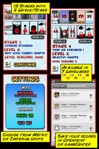 █ 使用这款基于物理学原理的应用程序,尽情跳跃 180 次,畅享数小时欢乐时光!计算绳索长度,观看蹦极小人一跃而下。蹦极小人是极限运动员,您要通过计算,让他们俯冲到接近地面,体验极度刺激。不过要务必小心,不然,他们将“啪嗒”落地,摔成碎片!!!难度逐级升高。您能完成全部 180 次跳跃吗? ──────────────── 蹦极小人使用真实的物理参数,以极其逼真的方式,展现蹦极小人的俯冲、反弹和“啪嗒”落地动作。您是蹦极达人!使用牛顿物理定律,算出您所需的绳长。其余事情,全部取决于重力。 将度量单位设置调整为英制或公制! 根据下列参数,计算未拉伸绳索的最佳长度: 蹦极跳塔高度 蹦极小人身高 蹦极小人体重 绳索弹性 让蹦极小人体验极度刺激!他接近地面,您将得分。他碰到地面,您将丢分。您需要达到一定分数后,才能玩下一级。 游戏共有 12 关,难度逐渐增加,每关由低到高设 5 级,每级可以跳跃 3 次以获得目标级分。 ──────────────── Webtopia iPhone Apps 是 Poulet Maison Pty Ltd 的商标。