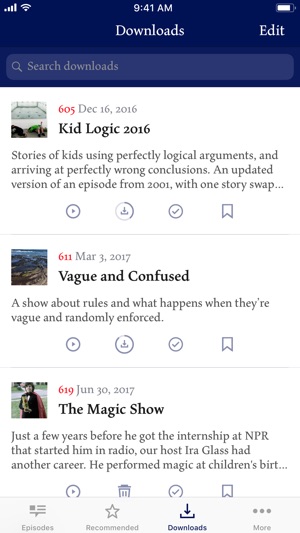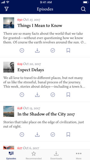 Official app for the public radio program This American Life, giving you access to the show's full archive. You can download an unlimited number of episodes for offline listening. You can also bookmark episodes to listen to later, and track your progress through our archive by marking stories as h…