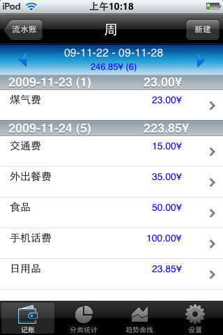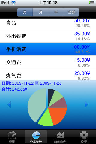 ****流水账是一个日常支出记录软件,只需简单的输入基本的支出信息,就能自动按日、周、月、年统计和浏览支出信息,并提供丰富的统计报表。 ****该软件能对任意的周、月、年进行分类统计,只需要一两次点击,就能让你知道你的钱花到什么地方去了。 ****该软件还能统计你最近30天,最近12周,最近12个月的消费趋势曲线,让你知道你的钱是什么时候花出去的。 ****该软件还提供了简单的预算管理,提醒你不要超支。 软件特点: >简单方便,易于理解,易于使用,输入简单 >可自定义的分类方式 >按日,周,月,年统计和浏览支出条目 >自动形成按周、月、年分阶段的分类统计饼图 >饼图与表格之间能互动操作 >自动形成最近30天,最近12周,最近6个月,最近12个月的消费趋势曲线 >曲线图与表格之间能互动操作 >简单的预算管理和收支平衡报告 >提供密码保护