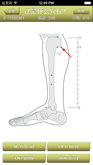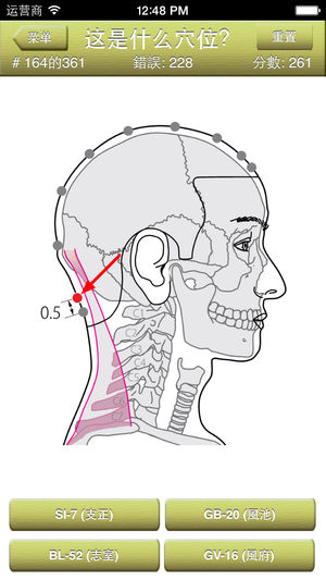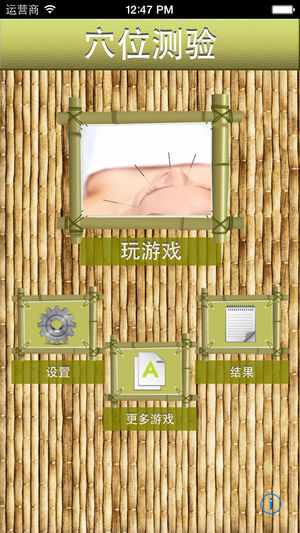 "穴位测验z" is a Chinese localization of the quiz which invites you to test your knowledge of chinese traditional medicine and human anatomy. It may be used for testing and educational purposes for people well-informed about the acupuncture and anatomy. Game consists of illustrated questions from this c…