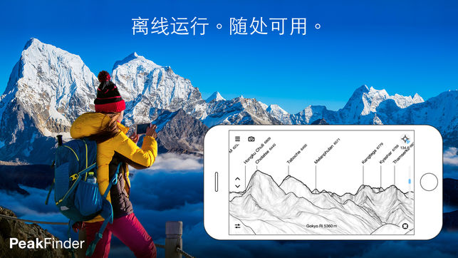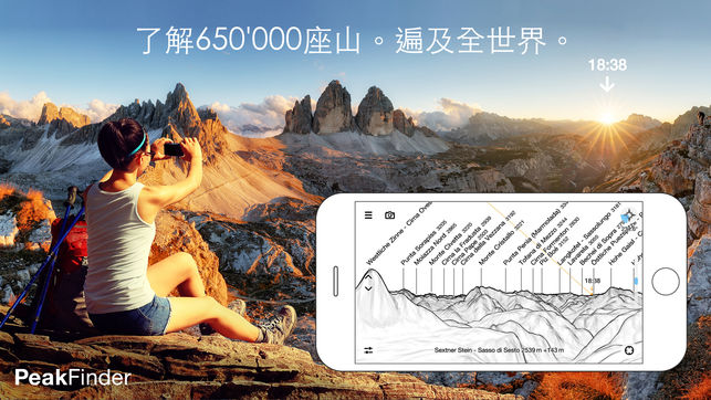 群山在召唤!力争在登山家队伍中探索最多高山吧! PeakFinder让你的梦想成为可能…,还能以360°全景显示所有山脉和山峰的名称。 该功能可完全脱机离线工作- 全球适用! 本应用的内容涉及到超过650'000座山峰- 从珠穆朗玛峰到世界角落的小山丘。 ••••••••• 荣获数个奖项的冠军,如'AppStore最佳应用'、'每周最佳应用',… macnewsworld.com, nationalgeographic.com, smokinapps.com, outdoor-magazin.com, digital-geography.com, …强烈推荐 ••••••••• •••…