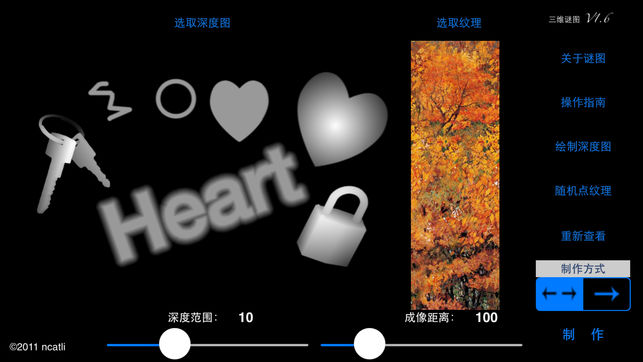 >特别的日子,给特别的人送去最最特别的祝福。把最想说的话,藏在只有两人能看懂的“三维谜图”里, 给Ta一份意外的惊喜哦。 >“三维谜图”能把你想说的话,或者最想让Ta看到的图像,变成一幅神奇的三维立体画,并将其保存于相册或发送给Ta。 >注意啦,这张三维立体画乍看只是张看不出任何特殊内容的普通图片,需要收到图片的Ta用心看——通过特殊的观看方法,它马上变成一个你放入了各种物品的立体橱窗,试试吧 : ) 一种实用的看立体画方法: 把屏幕亮度调低,放置一手指或钢笔在屏幕前,观察屏幕里的倒影,搜索其倒影周围,一会儿后你应该就能看到其中的立体图像。 小提示: 1. 在创建包含大量文字的立体画时…