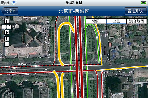 ★★★试玩网用户点评此应用为最好用的旅行必备类应用之一★★★更多点评尽在shiwan.com/apple 你肯定遇到过塞车的时候,在漫漫的等待之中你是否后悔没有选择另一条更好路线呢?堵车雷达让你迅速查看到目前城市的实时交通路况,无论是自驾还是坐出租车,甚至是乘搭公共汽车,都可以帮助你避开交通拥堵路段,选择最佳的出行路线,快速到达目的地。 使用方法 首先选择要查询的城市,然后再查看某个城区或整个市区的实时路况。路况数据通常包括了城市交通繁忙主要区域,绿色表示道路畅通,黄色次之,红色表示道路拥挤。另外,黑色表示道路堵塞。在查询到路况地图之后,可以进行以下操作: 1.放大缩小 用两个手指捏放进行地图放缩,也可通过地图中的'+'或'-'按钮放大缩小地图。 2.移动地图视窗 用单个手指拖拽进行地图视窗移动,也可通过地图中的上下左右箭头按钮来实现。 3.地图转置 为方便观看,可以转动iPhone或iPod Touch来得到横向或纵向显示的地图。 4.卫星地图 点击卫星标记,可以把路况信息显示在卫星地图上。 5.雷达信息切换 可以点击“雷达开/关”按钮来隐藏/恢复路况信息。 目前,可以查询以下22个城市的实时路况信息:北京、上海、广州、深圳、南京、重庆、成都, 沈阳、苏州、宁波,天津、青岛、石家庄、呼和浩特、福州、佛山、东莞、珠海、无锡、长沙、台州、泉州。查询时可以概览全市或者分区查看。 本软件需要连接互联网获取实时路况数据。 ========================= 软件推荐: 定时短信发送器: 独一无二! 绝对是整个苹果商店中独一无二的应用! 帮助你在特定时刻发送短信。只需要设定时间、发送号码和发送内容, 即可以定时发送短信, 无需人工干预。支持通讯录提取号码。搜索“短信时钟”半价下载。 51来电秀-任意号码归属地查询 软件可以让您迅速查询到手机或座机号码所属地域,无须联网,方便快捷。人工智能识别手机/座机号码,支持通话记录、短信、通讯录、网页等的号码查询。搜索“任意号码” 即可立刻半价下载。 泊车向导: 帮助您快速找到您的爱车,无论室内还是室外,都可以快速找到您的车辆。本软件还可以自动计算停车时间,杜绝停车乱收费的现象。搜索“泊车向导”立刻半价下载。 最新推出“手机营业厅(联通版)”以及“中国移动营业厅“软件,快速办理各项中国移动/中国联通的手机业务:流量查询,办理套餐,查询话费,手机充值,积分兑换,优惠活动、营业网点,密码重置等。(现在半价优惠一天,请抓紧下载)搜索“客户服务“即可。 全国银行信息大全 软件隆重推出。收录了全国工农中建招交、光大 华夏等银行的7万个网点的数据,并可查询地图,是您生活工作的好帮手。搜索“银行网点” 即可。