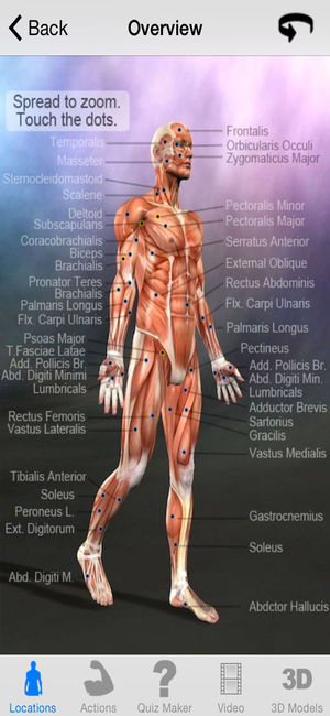 A great reference, testing and education tool. Includes 141 beautiful muscle images with name, action, origin, insertion and comments, plus audio pronounciation guide, a quiz maker, an action viewer, 7 3d models, and 6 short videos to create a rich learning experience. FEATURES: -3D MODELS: see t…