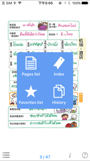 【[作者]/[出版社]】情报中心出版局 本软件是突破450万部的最畅销系列“旅行指指通会話”的iPhone应用软件。本软件是为了因观光、留学、商务等目的来到泰国的中国人而制作的会话手册。 【主要特征】 ■语音功能 点击画面,可反复倾听泰语发音。 ■按情景的不同显示语言! 彻底涵盖了基本用语。 ■自由自在的放大或缩小画面。 用两个手指点击、滑动屏幕可以放大或缩小画面。 ■附有简易插图 附有了插图,可以更容易找到想要查询的对话,丰富您的旅途。将更有利于您今后学习泰语。 【目录】 ●问候 机场〜酒店 是〜 问候 打招呼 ●移动 散步 交通工具 ●数字・购物 数字和单位 购物/按摩 衣服和颜色 日…