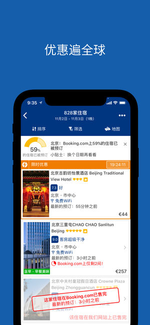 Booking.com缤客是广受好评的在线酒店及住宿预订App,旨在让用户方便快捷地预订理想酒店及住宿,享受专业而接地气的服务。超过150万家国内与国际酒店及住宿可供选择,多达1亿5千万条真实住客点评为你做参谋,是国内外旅游必备的利器App。 无论是周末度假、自由行、商务出差、自驾游、自助游、结伴游、家庭出游等,都可以依照你的需求,为你综合筛选找到最适合的住处。 • 2700万酒店、度假屋、公寓及其他独特住宿 Booking.com缤客手机客户端提供超过150万家国内外品质酒店及住宿。涵盖高档酒店、快捷酒店、宾馆、民宿、公寓、青年旅社、旅馆、民居短租、公寓式酒店、度假村等。更有特色住宿供…