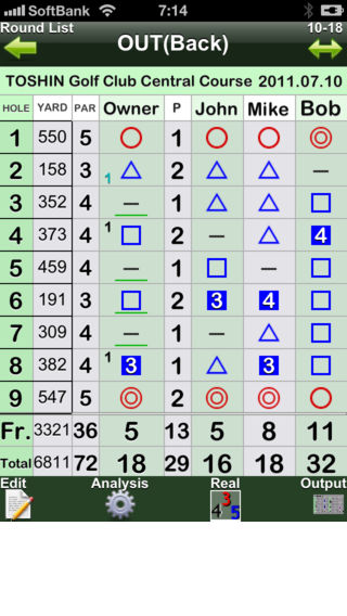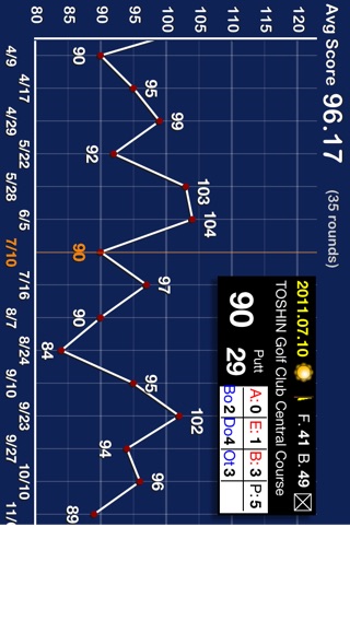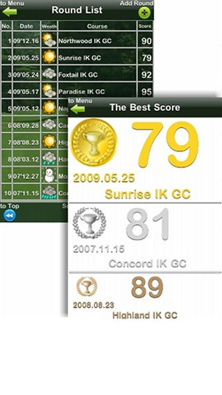 Information GPS function As for this Best Score, it thinks about what is necessary, and What kind of thing can you help to attain? in top priority by what being considered while actually playing. Distance..measurement..experience..sensibility..sense..count on..always..body..the..situation..original..natural..reaction..progress..shortcut..think..especially..measurement..function..prepare. And, concentrating on play is the maximum reason. - Effect of Best Score and a part of feature 1.Because the score need not be calculated in the round for myself, it is possible to concentrate on play. 2.Because the ability value at that time of that day is understood at one view only from doing one place of the score card screen the tap, maintenance and the change of feelings are possible. 3.Need not take it out of the pocket as much as possible to concentrate on play, the function and the entry task are limited. It takes out from the pocket, it inputs at once, and put it in the pocket. Then, golf of everybody must become more comfortable. 'Best score' (Best Score) This application program is used to manage the golf score on iPhone. - Function- - Please refer to 'BestScore Outline(EN)' of the support blog for details for the character number limitation. 1.Score input ・Score of four (Only I can input the number of putts). ・Fairway, OB, WH, and bunker record ・Power of several real at bats or which it is over can be selected. ・Variegated score display mode ・Score counter ・Lock function ・Score card output 2.Golf diary (photograph sticking) 3.Score analysis and statistics