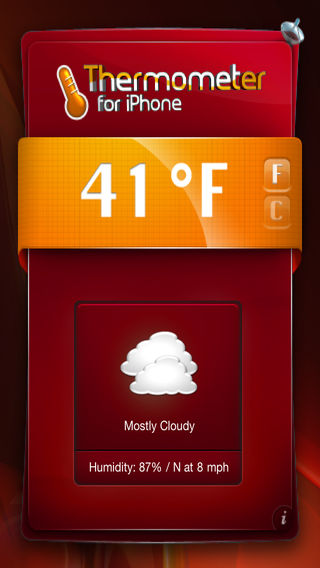 Thermometer is the market leader, it's undoubtedly one of the most useful utility app. Anywhere around the world, you get the temperature in one second without having to setup anything. You also have informations on wind and humidity. To suit all moods and tastes, the application offers six different themes. Thermometer works worldwide. This is undoubtedly one of the most useful applications. The application is very simple to use, run it, your location is automatically found by using the GPS of the iPhone and the temperature appears in a second with the sky condition, humidity and wind force . Temperature can be displayed in Celsius or Fahrenheit.