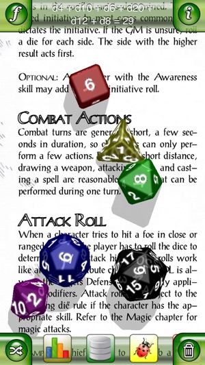 Important: This version is only intended for older devices that don't support iOS 9. Please search for "The Dicenomicon + 1" instead Deluxe fantasy role playing dice roller that actually rolls dice! Features: - All the standard dice shapes (d4, d6, d8, d10, d12, d20) - Exotic dice shapes (d14,…