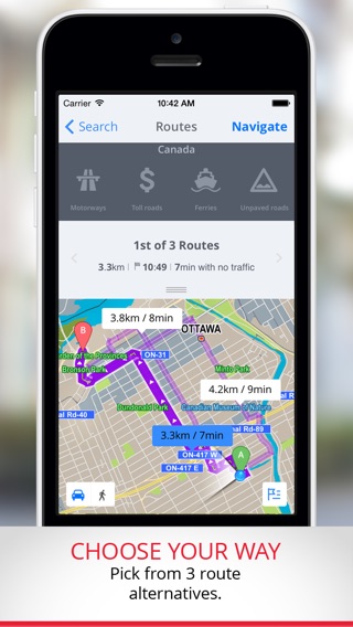 THE WORLD’S MOST DOWNLOADED OFFLINE NAVIGATION APP! Sygic is a premium turn-by-turn GPS navigation that you can try for free. High quality maps from TomTom and other providers are stored on your iPhone or iPad and you can navigate without internet connection. Lifetime license includes free map updates multiple times per year. This version includes 7 days to test drive full navigation. After 7 days you can continue to enjoy free and unlimited access to offline maps, POIs and route planning, or upgrade to Lifetime Navigation. _______________________________________ HIGHLIGHTS • Premium voice guided navigation with top notch maps • Offline GPS app, reliable & accurate navigation without internet connection • Lifetime navigation, no hidden or recurring fees • Multiple FREE map updates per year, no additional cost • One app optimized for both your iPhone and iPad _______________________________________ DESIGN & MAPS • A simple and beautifully designed interface, without clunky menus • 3D maps on state of the art level, with realistic buildings and landscape • Clear maps with only relevant information on different zoom levels _______________________________________ NAVIGATION • Powerful route computing with alternative routes • Spoken-street-names instructions tell you which street to take • Dynamic Lane Guidance shows the right lane so you won’t miss your exit • Intuitive drag & drop route editing and routes with multiple waypoints • Pedestrian navigation to walk and explore _______________________________________ SAFETY & USER COMFORT • Speed limit warnings in advance for increased safety • Speed camera warnings with built-in speedcam database • Police trap reports from other users • Route preview with quick access to commonly used features • Avoid Toll roads or Motorways with a single tap _______________________________________ SEARCH & POIs • Quickly & easily find places and people (contacts) • POIs – Millions of built in points of interest _______________________________________ PROFESSIONAL CUSTOMER CARE • Our customer care specialists are ready to help you out 7 days a week • Please get in touch with us at www.sygic.com/support _______________________________________ MAPS INCLUDED Canada _______________________________________ If you purchased Sygic Canada LIFETIME license, your license remains unlimited. Please contact us at support@sygic.zendesk.com if your license status in My Sygic > Your license status is not “Unlimited”. Note: Continued use of GPS running in the background can dramatically decrease battery life. Sygic | Bringing life to maps.