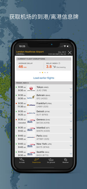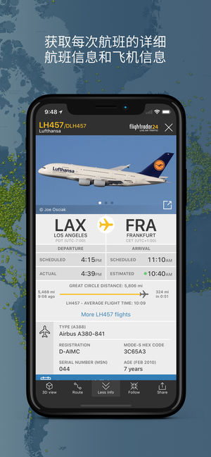 实时航班追踪器,已在 130 多个国家/地区成为最受欢迎的应用。 数百万航空爱好者和专业人员借助 Flightradar24 追踪航班。 •实时追踪飞机 •只需将设备对着天空,即可识别头顶上空的航班并查看航班信息(包括飞机的照片) •以 3D 形式体验飞行员的视角 •在屏幕上轻触飞机,即可查看航班详情,如飞行轨迹、时刻表、飞机类型、速度、高度、真实飞机的高分辨率照片等等。 •查看历史数据并观看过去航班的回放 •轻触机场图标,即可查看到达和起飞航班时刻表、航班状态、停在地面的飞机、当前的延误统计数据和天气情况 •使用航班号、机场或航空公司搜索各个航班 •按航空公司、飞机、…