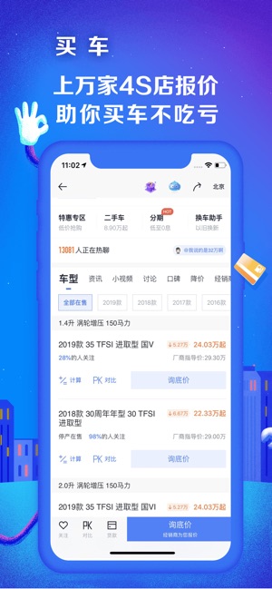 汽车之家,每天超过千万用户访问的汽车网站~ 为消费者提供选车、买车、用车、换车等所有环节准确、快捷的一站式服务 3亿家人与你一起使用汽车之家App。 *****网友为何都用汽车之家App***** 热点资讯专业全面 — 专业编辑团队,众多名家创作优质内容; 海量用户评论交流 — 千万用户互动,人气火爆的汽车交流平台; 前沿技术引领潮流 — 以科技驱动,以产品为核心,为用户提供极致体验; 选车买车便宜放心 — 拥有上万家4S店,致力为消费者提供及时、全面、准确的价格信息。 【专业内容 更快更全】 1、信息更快、更全、更专业的中国汽车媒体 2、汇集知名汽车媒体人,内容一定有你喜欢 【上亿网友…