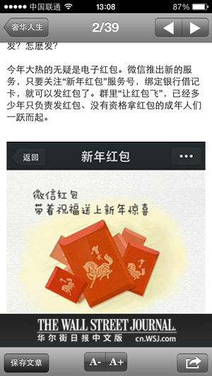 聚焦中国: 华尔街日报在中国拥有超过百人的编辑及新闻团队,其中40人专注于中文内容的服务。 全球视野: 华尔街日报中文网报道主题包括全球商业财经、金融市场、科技和观点。周一早7点至周六早7点不间断更新。 同步更新: 苹果应用程序与华尔街日报中文网实现无缝同步更新,让您随时随地,掌握最新商业资讯 功能: • 新闻、消息及市场数据及时更新 • 最新发布视频及图片集 • 用户自定义栏目导航 • 在iPhone中保存喜爱的文章,视频及图片集 • 通过电子邮件将浏览过的文章,视频图片集分享给认识的人