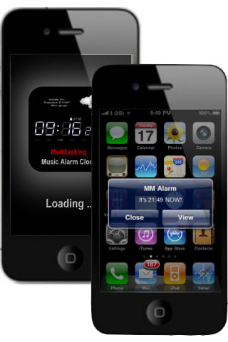 Multitasking Music Alarm Clock(MM Alarm) provides a beautiful digital alarm clock to your iphone/ipod. With the help of multitasking support on ios4, you can get notify even the app are not running. With the location information in your phone, Multitasking Music Alarm Clock(MM Alarm) can identify the city you are now living and get the weather information for every 10 minus. You can also let Multitasking Music Alarm Clock(MM Alarm) to play the music from your music library in ipone/ipod as an alarm. You can even let Multitasking Music Alarm Clock(MM Alarm) play a playlist as the alarm sound. There are also 22 built-in sounds/music for you to choose Attention: When use the background alarm function, please do not turn your iphone to silent mode. ****************************** *Notice: ****************************** The background alarm are only functional on iphone 3Gs,iphone 4, ipod touch third & fourth generation with multitasking support.