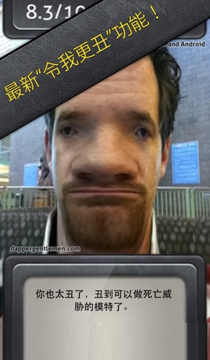 丑脸评分表 你有没有想过,其实你长得特丑,但是周围的朋友没有直接告诉你?或者你有一个朋友,整天特自恋其实巨磕碜,但你又不好意思直接说出来?哈哈,现在有了Ugly Meter,你就不用郁闷这事了!它会选取你的一张照片,扫描你的脸部细节,然后通过分析细节数据,给出一个1-10的等级,并且加上一些“评语”,等级越高说明你越丑,所以如果你的等级是10,估计你那张脸只有你妈妈想看了,以后白天就别出门了!总之很恶搞的一款软件,中,快拿去给自己或朋友评测评测吧!