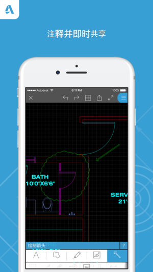 AutoCAD 移动版是一款随附易于使用的绘图工具的 DWG 查看应用,允许用户在软件许可规定的条件下,随时随地*在移动设备上查看、创建、编辑和共享 AutoCAD 图形。使用这个强大的应用程序,您可以轻松访问站点,并在软件许可规定的条件下随时随地开展实际工作。 下载 Premium(高级版)的 7 天免费试用版,以解锁易于使用的高级绘图和编辑工具。 AutoCAD 移动版精确、快速,且提供丰富的功能。可以直接从电子邮件或外部存储上载和打开二维 DWG 图形,并查看 DWG 文件的各个方面,包括外部参照、图层和图像参考底图。如果将该应用与桌面版 AutoCAD 或 AutoCAD L…