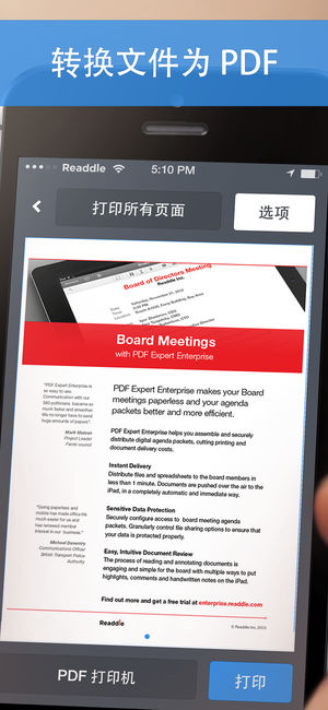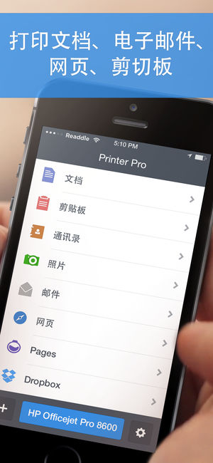 打印附件、文档、网页等来自 iPhone/iPad 、Wi-Fi 或 USB 打印机从文件。 先试后买 - 你可下载试用 Printer Pro Lite,看看它与你的打印机是否完美兼容。 Printer Pro 让你的文件通过 iPhone/iPad 无线打印。与多数 Wi-Fi 打印机兼容,你还可以通过安装在 Mac 或 PC 上的助手应用来完成打印作业。 完成安装后,Printer Pro 将可在设备上的「打开方式」列表中找到。只要你的 iPad 支持这个功能,你就能打印来自邮件、PDF Expert 等众多应用的文档。 很多在线存储服务都有提供「打开方式」的功能:Dropbox…
