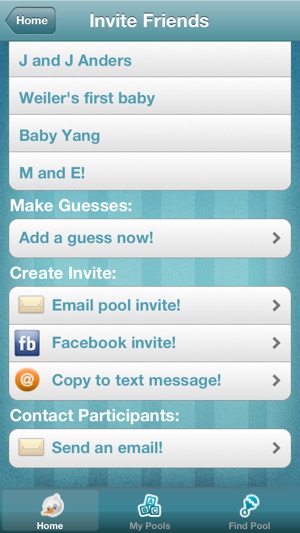 ◊ Healthline.com in "The top 18 pregnancy apps of 2012" ◊ babble.com in "The best 25 pregnancy apps for 2011" Expecting parents! Add some fun and excitement to your pregnancy in the one and only Baby Pool app! Baby Pool is a game where family and friends guess the name (boy and girl), gender, bi…