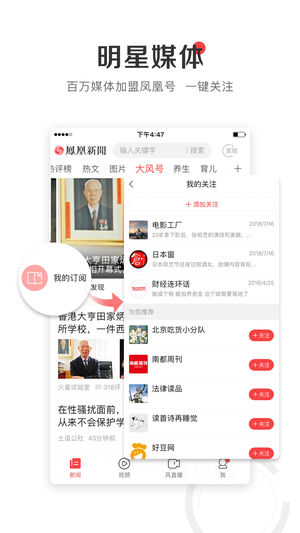 凤凰新闻,专业新闻资讯平台。 凤凰网日均覆盖用户数约5000万,月度覆盖用户数近4.2亿,移动端累计月度覆盖用户数超过3亿。 无论你是高管大咖还是创业先锋,无论你是美妆发烧友,还是辣妈奶爸,无论你是养身达人还是二次元控,凤凰都能给你最想看的新闻。家国大事、热点头条、前沿时尚、黑科技控、房产动态、娱乐八卦、私密爱好,你需要的,就是凤凰。 1、智能推荐给你好看 下拉一下切换兴趣推荐模式,算法推荐给你喜欢看的内容,不感兴趣直接点叉屏蔽,用得越久凤凰越懂你。 2、精选小说任你畅读 编辑精挑细选百万本图书资源,大量完结、连载、出版小说,同时提供高品质听书资源。涵盖小说类型:武侠、言情、科幻、玄幻…