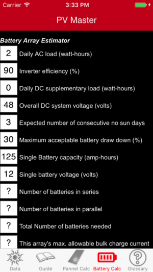 ************************************* 找到所有的光伏发电数据,您需要为您的位置。 *********** 当你手动输入坐标,他们必须以十进制格式。 如果不能确定,从谷歌地图上的坐标。 ************ “这iPad和iPhone的应用程序是一个全面的工具,旨在帮助太阳能专业计算基本上是一个光伏阵列的各个方面,包括天气信息,如晴朗的天空天,在整个一年多小时的太阳角度。 它不会停在那里,虽然。应用程序生成信息系统的大小,你需要多少面板,将它。它还计算的电池备份的大小是建议的系统。这个应用程序还包括一个引导和词汇表,用户可以得到更多的信息。 基本上,…