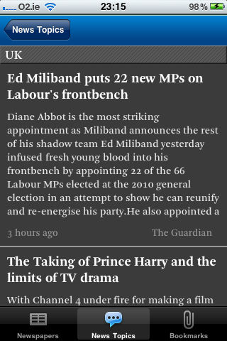 UK Daily News is a brand new app that brings you all the latest news from the UK's top news outlets, instantly. • Browse and select from our database of British news outlets. • With a fully customisable list of British newspapers and their topics, read only the articles that you want to. • Share articles with friends via email, facebook and twitter. • News articles bookmarkable to read later. • Select articles by news outlet or by topic. • Very user-friendly and easy to navigate.