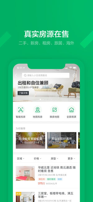 链家App是集二手房、租房、新房功能于一体的手机找房软件,我们打破信息壁垒,为您提供市场行情分析、房源成交历史、带看历史,并告知您关注的房源、小区的动态信息,让您不错过好房源! 【二手房、租房、新房频道】 丰富房源,让你选择更惬意。为购房者、租房者提供提供房源信息搜索、浏览功能,为业主提供在线委托及在售房源管理功能,让您的房产交易更加便捷。 【全新 UI 风格,更完美的找房体验】 UI全新改版,风格清新明快,颜值更高! 【个性化房源动态信息】 关注房源动态及时提醒,让您不错过好房源! 目前包含城市:北京、上海、天津、大连、南京、杭州、成都、青岛、武汉、深圳、重庆、长沙、西安、济南、厦门…