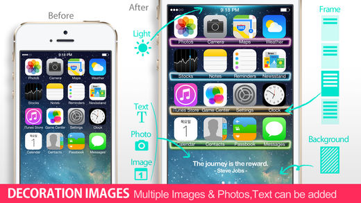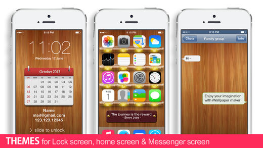 Optimized for iOS 8. Enjoy the new wallpaper. * * * Limited time SALE! 50% OFF * * * Do you still use typical and dull backgrounds? iWallpaperMaker is the finest wallpaper app you have found yet. Enjoy your own fancy wallpapers by using iWallpaperMaker, which includes cool images of high quality created by a professional designer and more powerful editing functions. The moment you experience iWallpaperMaker, you’ll be able to see your newly born screen. Enjoy your imagination with iWallpaperMaker. Download NOW! ------------------------------------------------ - Introduction - * Chic and cool images ( x1000+ ) - is app that helps you customize the look of your device by giving you an exclusive selection of specially designed backgrounds. - We provide a variety of library images: Icon frame, Apps Shelf, Calendar, Name Tags, Symbol, Backgrounds - Main theme (Reduce Motion > On (1:1Scale) ) : Home screen - Bonus theme : Lock screen - Bonus item : Reduce Motion > Off (Parallax Scale) Preview (Bonus Themes are temporarily provided and subject to change or be deleted without notice.) * Customize - We can create endless image combinations and depending on your diversified taste, you can also utilize your favorite photos to create special wallpaper backgrounds. - use your own photo. Customize font, color, frame shape and more. - adjust saturation, brightness and contrast of each image. * Preview & Resize 1:1Scale (Lock Screen, Homs Screen), Parallax Scale (Lock Screen, Homs Screen), Instagram, Messenger background instant preview feature that allows you to quickly preview your new background or app shelf. for Reduce Motion On (1:1Scale) / Off (Parallax Scale) Are you facing problems trying to resize wallpapers in iOS 7? Resize, scale & make your wallpapers to fit screen. It also allows to design your own wallpapers for iOS 7. (No need to Turn on Reduce Motion) Tip: Settings > General > Accessibility > Reduce Motion > On / Off (Note: If zoomed, you will need to rescale your wallpaper to fit to the screen.) * Share Share your designs via email, text or Facebook. Save your designs on your camera roll. * Retina resolution images for iPhone 4/4S/5/5C/5S, iPod touch 4th/5th gen ------------------------------------------------ Thank you for the comments submitted via email, we're working hard on making the app better. Q: We can't save it to our photos folder A: Settings > Privacy > Photos > App ON - Bug fixes - Enhancements - Added 2014 Calendar Images