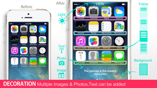 Optimized for iOS 8. Enjoy the new wallpaper. * * * Pro ( image x 1000+ ) : Limited time 50% OFF * * * * * * Lite ( image x 200+ ) : * * * Do you still use typical and dull backgrounds? iwallpaper maker is the finest wallpaper app you have found yet. Enjoy your own fancy wallpapers by using New Wallpaper, which includes cool images of high quality created by a professional designer and more powerful editing functions. The moment you experience iWallpaper Maker, you’ll be able to see your newly born screen. Enjoy your imagination with 'iWallpaper Maker. Download NOW! ------------------------------------------------ - Introduction - * Chic and cool images (Retina) - is app that helps you customize the look of your device by giving you an exclusive selection of specially designed backgrounds. - We provide a variety of library images: Icon frame, Apps Shelf, Calendar, Name Tags, Symbol, Backgrounds - Main theme (Reduce Motion > On (1:1Scale) ) : Home screen - Bonus theme : Lock screen - Bonus item : Reduce Motion > Off (Parallax Scale) Preview (Bonus Themes are temporarily provided and subject to change or be deleted without notice.) * Customize - We can create endless image combinations and depending on your diversified taste, you can also utilize your favorite photos to create special wallpaper backgrounds. - use your own photo. Customize font, color, frame shape and more. - adjust saturation, brightness and contrast of each image. * Preview & Resize 1:1Scale (Lock Screen, Homs Screen), Parallax Scale (Lock Screen, Homs Screen), Instagram, Messenger background instant preview feature that allows you to quickly preview your new background or app shelf. for Reduce Motion On (1:1Scale) / Off (Parallax Scale) Are you facing problems trying to resize wallpapers in iOS 7? Resize, scale & make your wallpapers to fit screen. It also allows to design your own wallpapers for iOS 7. (No need to Turn on Reduce Motion) Tip: Settings > General > Accessibility > Reduce Motion > On / Off (Note: If zoomed, you will need to rescale your wallpaper to fit to the screen.) * Share Share your designs via email, text or Facebook. Save your designs on your camera roll. * Retina resolution images for iPhone 4/4S/5/5C/5S, iPod touch 4th/5th gen ------------------------------------------------ Thank you for the comments submitted via email, we're working hard on making the app better. Q: We can't save it to our photos folder A: Settings > Privacy > Photos > App ON