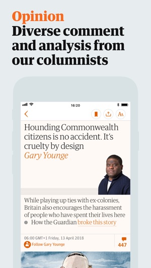 Get the news that matters, on the go. The Guardian App gives you access to award-winning journalism with top stories, opinion & sport. Stay up to date with live news and sport, wherever you are. 3 reasons to download The Guardian App for free: 1. Receive breaking news alerts 2. Save articles you’…