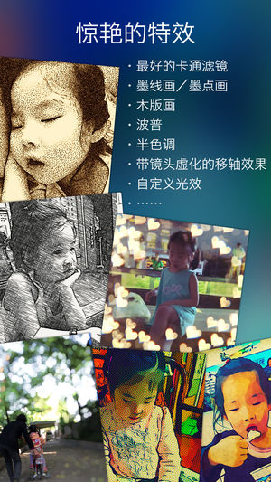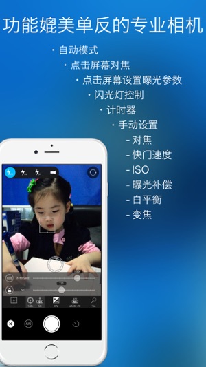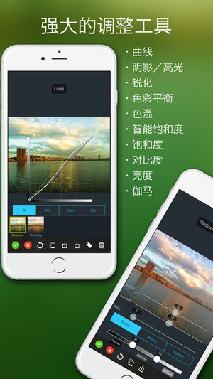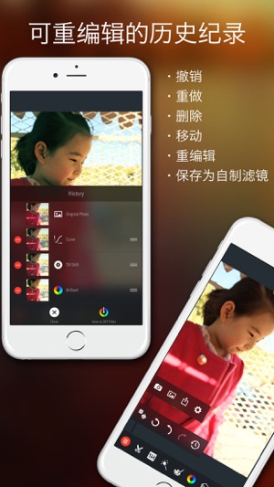 获「最美应用」官方推荐。 iDarkroom是一款实时、直观、强大的图片编辑器。iDarkroom 1曾在12个国家的App Store被选为“本周最佳应用”。现在我们满怀激情的向您介绍全新的iDarkroom 2,我们从头开始,开发了这款应用。 全新界面 清晰的用户界面,更大的预览区域,为单手操作优化。 功能媲美单反的专业相机 现在可以点击屏幕画面来设置焦点和曝光参数,也可以手动对焦,手动设置快门速度、ISO、白平衡、曝光补偿和变焦。(需要iOS 8) 强劲的调整工具 使用曲线、可选颜色、通道混合、胶片噪点、褪色、阴影/高光、锐化、色彩平衡、智能饱和度(调节饱和度的同时保持皮肤色调正…