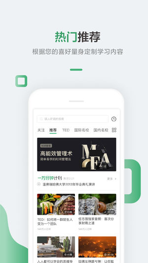 网易公开课,数千万爱学习的网友所钟爱的免费课程平台! 产品团队始终坚持在内容和设计上与时俱进、不断突破,曾荣登"苹果周最佳应用榜",荣获"豌豆荚设计奖"、苹果官方评选的"中国区教育类最佳应用"、新周刊"优化生活特别奖"、新京报"年度公益奖"、DCCI"最学习奖",并于2015年中国产业互联网峰会中荣获"最具价值在线教育平台"称号。 • 课程资源好又多:作为中国最大最全的课程视频平台,拥有来自国内外顶尖学府的海量名师名课,覆盖文学艺术、历史哲学、经济社会、物理化学、心理管理、计算机技术等二十多个专业领域;作为TED官方合作伙伴,向国内用户提供最新最赞的TED演讲;引人入胜又发人深省的纪录片、…