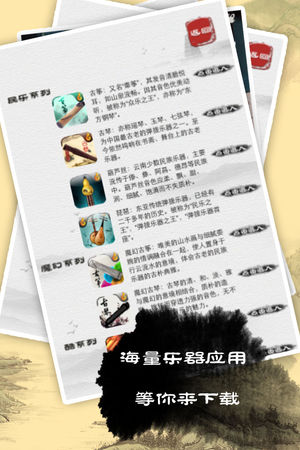 云创新应用大优惠! 所有收费应用大降价,1元购买,仅限这周,赶快下载! MEET Studio民乐系列又一经典,由“古筝”和“魔幻古筝”(Magic Zither)的开发者设计! 二胡又名“胡琴”,唐代已出现,称“奚琴"”,宋代称“嵇琴”。一般认为今之胡琴由奚琴发展而来,现已成为我国独 具魅力的拉弦乐器。它既适宜表现深沉、悲凄的内容,也能描写气势壮观的意境。 二胡是中华民族乐器家族中主要的弓弦乐器(擦弦乐器)之一。唐朝便出现胡琴一词, 当时将西方、北方各民族称为胡人, 胡琴为西方、北方民族传入乐器的通称。至元朝之后, 明清时期, 胡琴成为擦弦乐器的通称。, 意境深远的《二泉映月》…