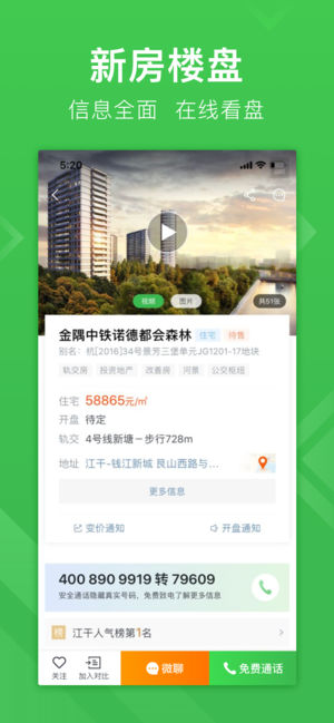 *找二手房新房租房,买房产查房价卖房租售商铺写字楼的专业房产应用 *业界强大的二手房新房租房推荐系统,用大数据猜你喜欢的房子 *业内强大的小区数据库,定制你关注的房源房价 *地图搜房,搜索附近房产,地铁房、轨交房、打折楼盘 *大平台房源全,覆盖别墅、公寓、商铺写字楼出租出售 *海量房源:二手房、新房、租房、商业地产、海外地产 *定制房价:小区房价、房价走势、房价评估 *特色找房:地图搜房、附近找房、轨交淘房、全景看房 *新房折扣:新房团购,免费班车,特惠新盘 *商业地产:商铺写字楼出租出售,商务楼办公室租赁 *房产工具:房贷计算器、房产百科、二手房新房看房笔记 *房东委托:委托卖房、专属房东…