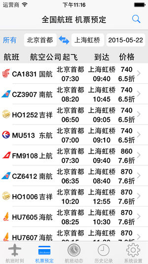 全国旅行系列之全国航班线路查询系统。 包含航班时刻表(离线数据),机票查询及预订,航班动态查询,航班日程提醒等功能。 航班时刻表:包含全国7000余次航班的离线数据,并可以在线更新。 机票查询及预订:拥有众多机票来源,支持电话预定、邮件/短信发送订票信息。 机票预定后支持航班日程的提醒。 航班动态查询:支持按航班号、机场两种查询方式。 如有任何疑问或建议,请联系: 邮件:wangxinnong@gmail.com 微博:http://weibo.com/wangxinnong