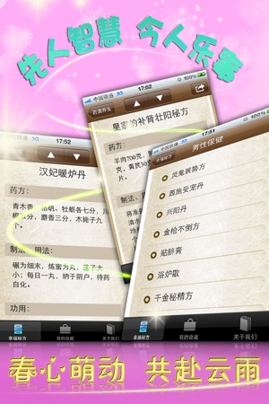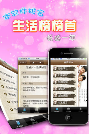 ★★★ 本软件自上线以来累计排名生活榜第一长达一年!累计排名总榜TOP 50达16个月之久!★★★ ★★★ 十万用户见证,销量说明品质!★★★ ----------------------------------------- 博大精深的中国古代文化,孕育出无数今人难以想象的奇迹妙方。依托于传统中医科学,古人发明了很多用于增强性功能、提高性快感的药物或处方,许多古代房中术名著,如《黄帝内经》、《素女经》、《玉房秘诀》中都有明确记载春药配方及功效。 相比现代所采用的春药或壮阳药物,古代药物都是由天然药材制成,副作用较少,并且具有强身健体的功效。 然而随着时间的流逝,这些秘方渐渐失传,今天经过…