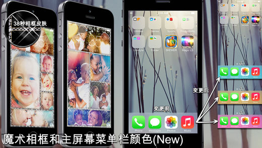 魔法屏(V3.5)iOS8版本隆重回归! 一同回归的还有牛逼的功能和一流的设计!百万用户与您一同体验! 这次的体验绝非以往。 描述 魔法屏使用超乎寻常的技术处理您的照片创建您想要的壁纸,使用他创造出来的壁纸会给人以错觉,认为是用AI或者PS处理过的图片一样! 我们使用智能手机,但是我们选择壁纸的方式并不智能。我们不想涉足平庸的单一壁纸事业,因为你可以在互联网上找到上亿张壁纸。 这里的关键词是“我唯一的壁纸“。一张世界上独一无二的壁纸! 【功能】 功能强大的文字编辑 无限文字输入 超过100种字体,移动,放大,居中,改变颜色,轮廓线,阴影等。 伟大的照片编辑 不限数量的照片处理 14种不同的滤镜,4种形状,边框(自定义颜色),阴影等。 日历 12种漂亮皮肤的日历 日历被编译成支持任何一天,任何一个月,任何一年,你不用再等待网上出新的日历才可以使用! 【魔法效果】 使用多种效果简单的处理独一无二的壁纸! 【魔法相框】 在任何地方你都找不到像我们一样可以完美的支持您屏的壁纸! 放置用神奇的相框把你您爱人的照片放进去吧! 你甚至可以在相框上面添加任何你想添加的标签和文字。 38种皮肤和不同宽度的相框 纹理和阴影会使您的相框看起来更加生动 【魔法壁纸】 使用您的文字和照片作为全新壁纸的原材料。 不会再让您考虑如何制作不同的壁纸而头痛! 每一种壁纸还会配上不同的音乐效果。 在雨后的窗户上作画(唰。。。) 对着屏幕吹起就会起雾哦 20种美丽的背景虚化效果 ”在海边撕掉你的前任的各种照片“ 在天空中画云彩 把你的照片放入一个有名的电影场景里 把你的照片放入App Store排名里的第一位(只为娱乐) 在棒球上签名 在杯子上贴上您爱人的照片 把照片放入通缉海报里 金属文字 用你的名字来创建一个牛仔品牌吧 在沥青地面上写下您想写下的文字 我是钢铁英雄 在屏锁里写下手机号,防止丢失 用自己的文字和符号创作骷髅头 斑马来了 自传样式 美丽的光线文字 用毛线编织成的照片 一个超级真实的打字机 黄金文字 一个真实话超高的根雕 使用52种不同的主题,颜色,效果你可以创造出无限多的壁纸 【魔法主屏幕】 -改变菜单条的颜色 -在主画面显示日历