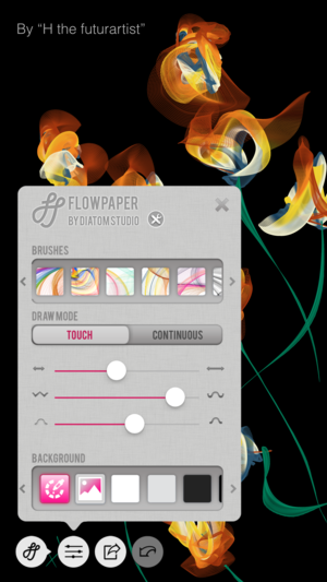 “Flowpaper 是一款基于物理引擎的神奇艺术应用,你可以用它来创建非凡的艺术大作!” -app Safari 流线(Flowpaper)是一款交互性绘画创作工具,它可以让您用指尖创作绚丽流动的绘画。你可以用流线为您的苹果设备创作个性化的背景,也可以将作品与朋友分享。 特性 • 利用物理引擎创作 •有趣的彩色波纹 • 通过facebook和twitter与朋友分享 • 可以从相册中载入图片(IOS4及以上系统) • 可以输出高达1536x2048分辨率的图片 •撤销按钮可以恢复误删除的流线作品 附加功能设定 • 在清空画板前提示 • 自动隐藏的工具栏 • 支持将图片转换成方形(iPa…