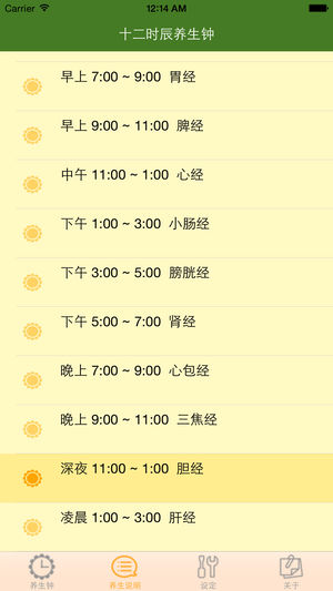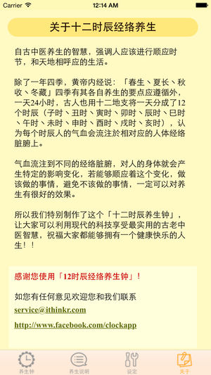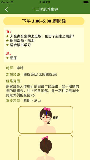 「十二时辰经络养生钟」是您培养健康生活方式的随身小帮手!! 按照中医经络理论,我们将每个时辰,现代人在日常生活中该相对应的生活方式,以时钟的方式呈现。 例如下午1点至3点的时段是属于小肠经的时间,本软件将会提醒您这个时段适合泡杯茶多喝水以利排毒,更要切忌在这个时段憋尿,会影响健康。 想要拥有健康的生活,让我们一起学习古人的养生智慧! [[软件功能特色:]] *详尽的12经络养生方式说明介绍 *精美的经络分布图(12幅) *经络说明图设计如时钟,会依照时间移动至当下的经络时辰,并依据当下的时辰给予动态的健康知识小提醒 ! *内设简繁中文及英文切换 祝福大家都能够拥有一…