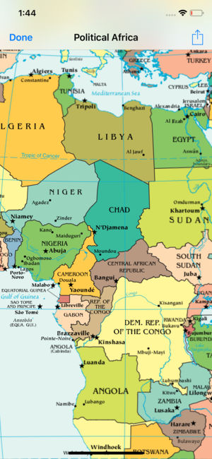 The whole maps of the world! No internet connection is required. All the maps are stored in your device and can be viewed offline. • Vector maps of the world regions, no quality loss when zooming • Print maps • Mail maps