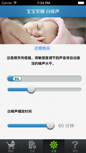 选择回放时间,激活传感器,然后您就能整夜安心睡觉了。《宝宝安睡》系统在探测到婴儿啼哭后会自动激活。 晚上无法睡觉? 您的宝宝晚上会醒来啼哭吗? 您再也不用起床安抚宝宝了,《宝宝安睡》系统将为您代劳。应用程序使用的声音传感器在探测到宝宝啼哭后会自动激活程序。它在后台工作,即使在您使用其他应用程序或移动设备关闭时仍可以自我激活。它不间断地播放轻松的声音来帮助您的宝宝入睡。 白噪声现在陪伴着全世界成千上万的婴儿入睡。这种方法经科学证实是有效的! 新手父母经常注意到他们的宝宝在有单调噪音的情况下容易入睡——比如吹风机、洗衣机或干衣机的声音。这些电器基本上发出的都是白噪声。宝宝会觉…