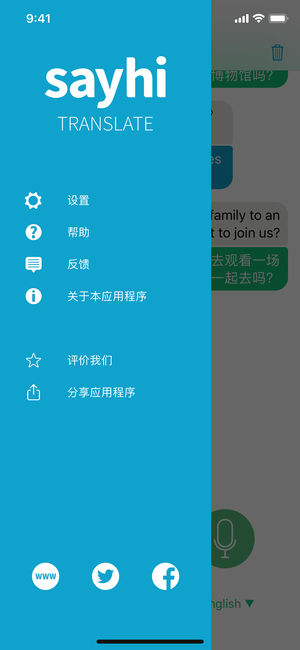 在 iOS 上安装 SayHi 翻译,即刻免费畅说外语!跨语言交流,即刻为您翻译。 这款功能强大的应用程序由以下机构提供:NBC Today Show、Lifehacker、Gizmodo、TUAW、TechCrunch SayHi 是您口袋里的翻译官 ******************************************** + 在 iPhone 和 iPad上安装SayHi 翻译后,即可进行以下语言互译: 阿拉伯语、波斯尼亚语、保加利亚语、加泰罗尼亚语、简体中文、繁体中文、克罗地亚语、捷克语、丹麦语、荷兰语、英语、爱沙尼亚语、芬兰语、法语、德语、希腊、海地克里奥尔语…