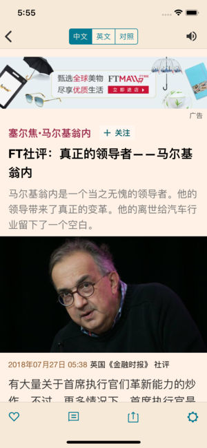 FT中文网是英国《金融时报》集团旗下唯一的中文商业财经网站,旨在为中国商业菁英和决策者们提供每日不可或缺的商业财经新闻、深度分析以及评论。 凭借英国《金融时报》遍布全球的丰富报道资源,结合本地专业知识,FT中文网深入分析对中国经济和全球商业具有影响力的重大事件,并揭示其来龙去脉,以真正富有国际视野的权威报道成为中国高级管理人员“必读”的商业财经资讯网站。 我们的应用从4.0版开始全面升级: - 分享更简单:会自动把你经常使用的社交网络列出来,文章、视频和网页都可以分享。 - 界面更简洁:版面完全重新设计,完美支持高清屏,令您可以完全专注在内容上。 - 操作更流畅:阅读、回退等功能更符合手…